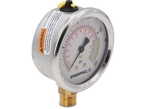 G2511L, Manomètre, 63 mm Face, Raccordement Vertical, Bain de glycérine, 14 bar pression maximale