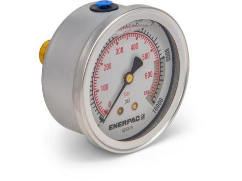 Pression de travail maximale - 1000 bar - Style - Glycerine Filled - Diamètre du manomètre - 63 mm - Précision, 100 % de la pleine échelle - 1.5 - Monter - Raccordement Vertical - Grandes graduations - 100 bar - Petites graduations - 20 bar - Features - Gradués pour lecture sur d