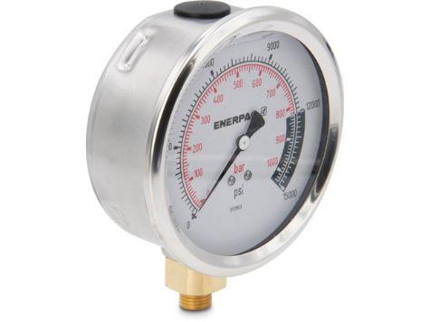 G4089L, Manomètre, 100 mm Face, Raccordement Vertical, Bain de glycérine, 1000 bar pression maximale