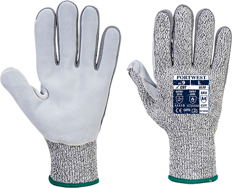Gant gris medium A630G7RM - Niveau D à la coupure avec renfort cuir sur la paume - Résistance à la chaleur jusqu'à 250°C