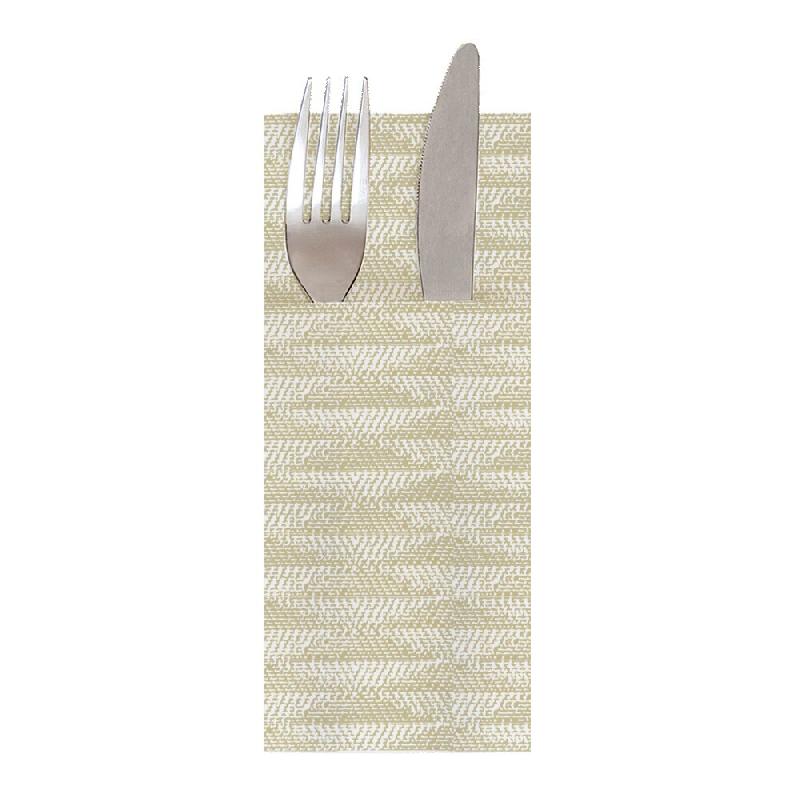Les serviettes cangurito de 33x40 cm en couleur kaki sont une option pratique et élégante pour la présentation des couverts sur la table. Fabriquées en matériau airlaid de 55 g/m², elles offrent une texture douce et une haute résistance, procurant une sensation similaire à celle du tissu. Elles intègrent une poche intégrée permettant de placer les couverts de manière ordonnée et hygiénique, optimisant ainsi le service dans les restaurants, cafés et événements. Leur design présente un motif géométrique en tons kaki sur fond clair, ajoutant une touche de sophistication et de modernité. Lorsqu'elles sont pliées, elles mesurent 8,3x20 cm, ce qui facilite leur disposition et leur utilisation sur la table, garantissant une expérience de qualité pour les convives.