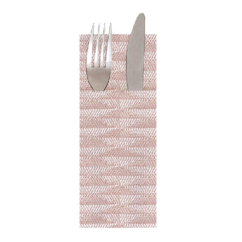 Les serviettes kangourou de couleur terracotta se distinguent par leur design pratique et élégant, idéal pour la présentation des couverts sur table. Fabriquées en matière airlaid de 55 g/m², elles offrent une texture douce et une grande capacité d'absorption, procurant une expérience similaire à celle du tissu tout en bénéficiant de la praticité d'un produit jetable. Leur design intègre une poche intégrée qui permet de ranger les couverts de manière ordonnée et sophistiquée. Le motif présente un design géométrique en tones blancs et terracotta, ajoutant une touche moderne et accueillante. Avec une taille dépliée de 33x40 cm et pliée de 8,25x20 cm, elles sont parfaites pour les restaurants, les services de traiteur et les événements qui recherchent une présentation soignée sans renoncer au confort.