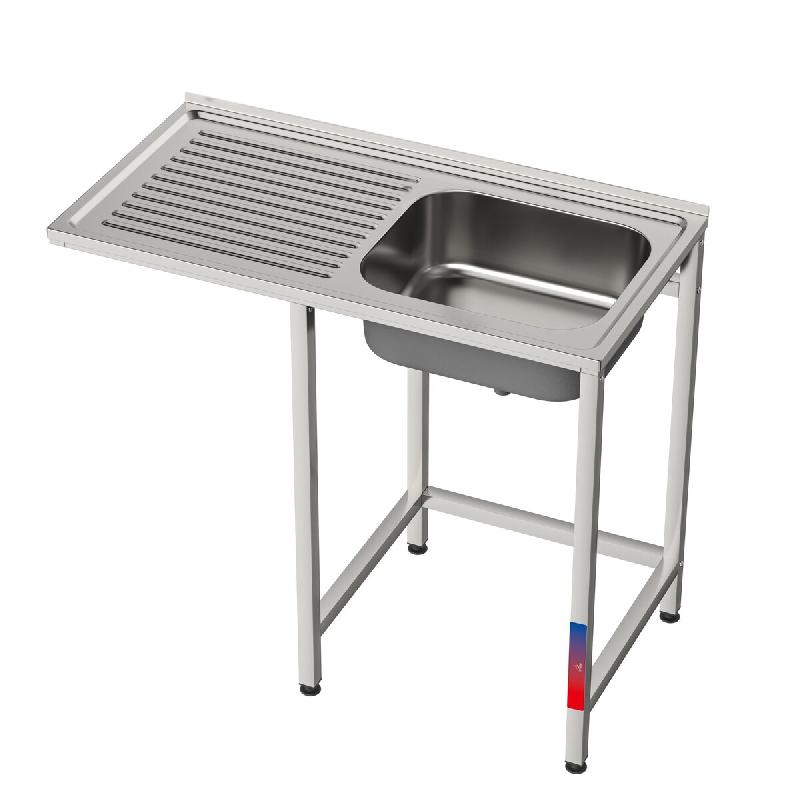 Évier industriel en acier inoxydable 100 x 500 x 850 mm avec 1 bac et égouttoir, prévu pour robinet double arrivée d'eau