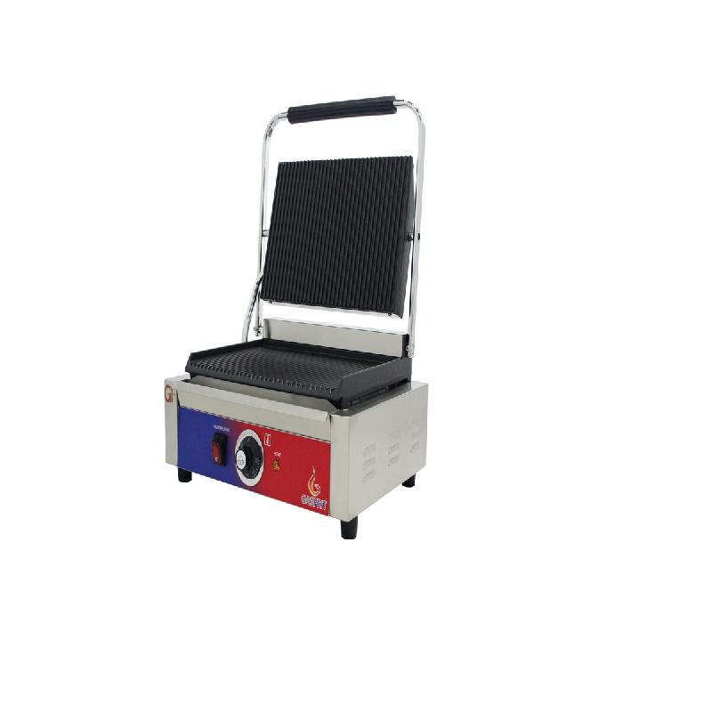 - Plaques de grande surface lisses : Idéal pour la préparation de snacks tels que panini, focaccia, pita, etc. Ces appareils sont polyvalents pour griller. - Appareil robuste : Conception en acier inoxydable. - Plaques en fonte d'acier : Assurent une diffusion thermique optimale. - Thermostat r
