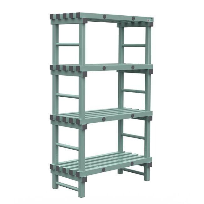 Beaucoup de surface utile occupant relativement peu de place, stabilité, simplicité de montage et un minimum d'entretien. - Les rayonnages sont réalisés en PVC de haute qualité, résistant et supportant de larges plages de températures ( - 40°C jusqu'à 80°C). Ils sont très appropriés pou