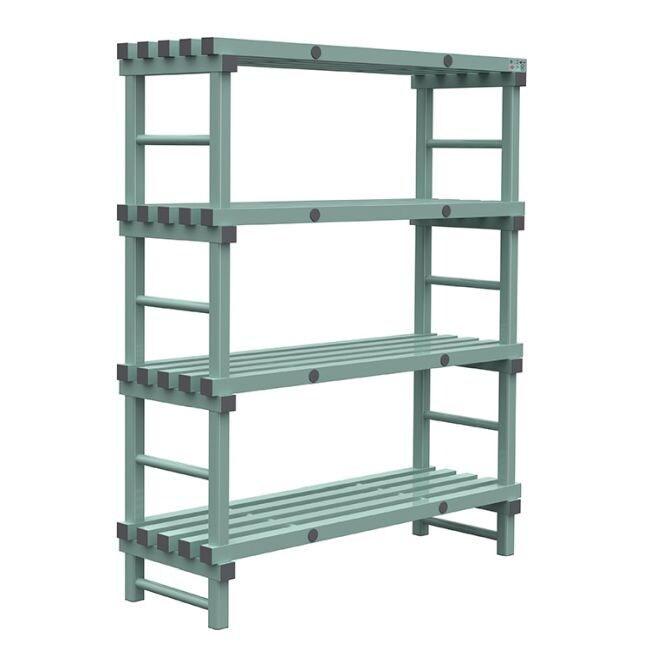 REA Étagère Euro 1400(L)x500(P)x1750(H)mm avec 4 montants.Modèle : Étagère 500mmExécution : 4 montants avec 450mm d'écartMatériau : Plastique de haute qualité, capacité de charge jusqu'à 200 kg par mètre, par étagèreDimensions : 1400(L)x500(P)x1750(H)mmPiedsTempérature admissible : .-40°C à +60°CExtra : Nettoyage facile grâce à la structure ouverte