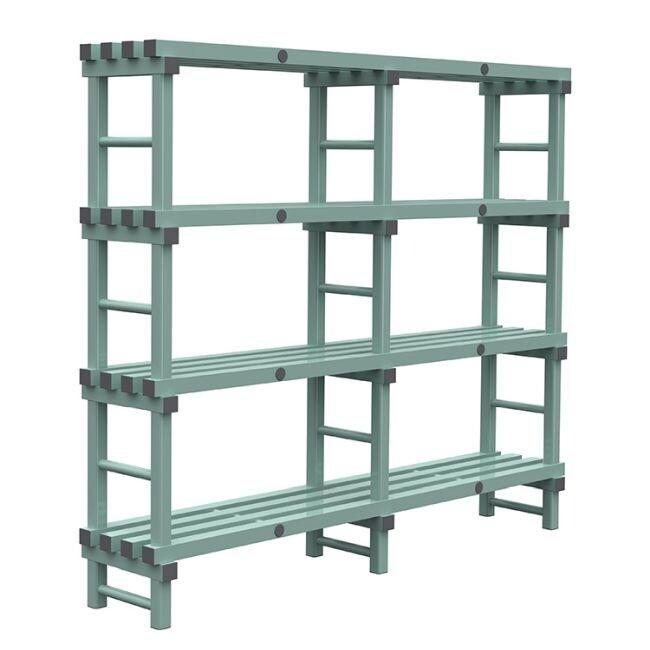 Beaucoup de surface utile occupant relativement peu de place, stabilité, simplicité de montage et un minimum d'entretien. - Les rayonnages sont réalisés en PVC de haute qualité, résistant et supportant de larges plages de températures ( - 40°C jusqu'à 80°C). Ils sont très appropriés pou