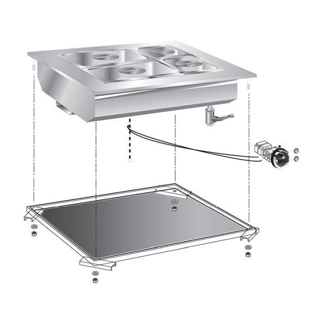 Bain - marie à encastrer GN 1/1 avec robinet de vidange Appareil à encastrer de la gamme Cafeteria Drop In, fourni sans la structure, avec : - Poignées de commandes - Câblage d'une longueur suffisante pour l'installation de l'appareil jusqu'à 500 mm de distance des résistances - Caractéris