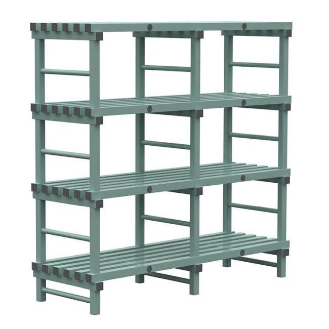 Beaucoup de surface utile occupant relativement peu de place, stabilité, simplicité de montage et un minimum d'entretien. - Les rayonnages sont réalisés en PVC de haute qualité, résistant et supportant de larges plages de températures ( - 40°C jusqu'à 80°C). Ils sont très appropriés pou