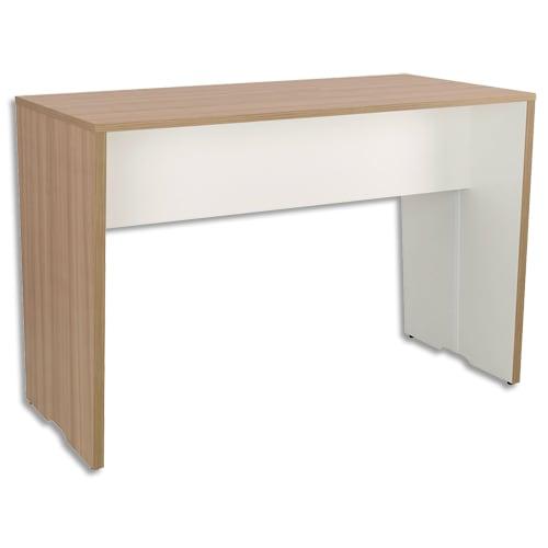 Bureau droit simple sans voile de fond, plateau 120 x 80 cm. - > Plateau mélaminé ep.25 mm pré - percé pour obturateurs - Coloris Chêne clair. - > 2 obturateurs en ABS injecté, composés chacun d'un bouchon Ø 60 mm et d'une bague encastrée dans le plateau. - Coloris Anthracite. - > Piè