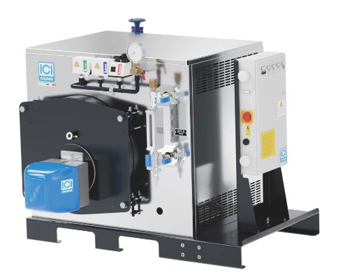 Générateur de vapeur instantanée à tubes de fumée à inversion de flamme, complètement automatique, à rendement élevé. Le faible contenu d'eau et les dimensions réduites d'encombrement font du générateur de vapeur la solution plus indiquée pour toutes les petites et moyennes utilisations où il faut une disponibilité efficace de la vapeur sans devoir mettre en œuvre des mesures excessives pour la gestion de la centrale thermique.