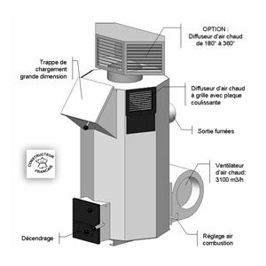 ECOPOLY 2 - Generateur d'air chaud polycombustible vegetal au bois, carton, copeaux... Un chauffage air chaud mais aussi rayonnant - ECOPOLY 2 est une vraie solution air chaud pour les ...