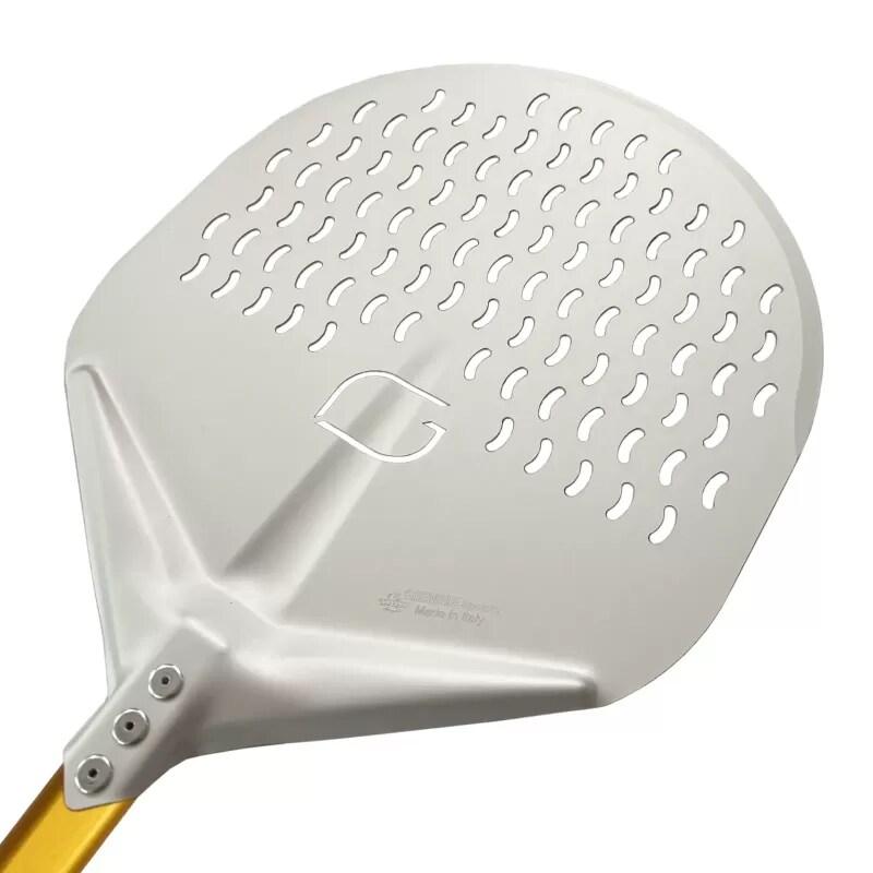 Giemme Spoleto - Pelle à pizza professionnelle avec tête ronde perforée de 30 cm et manche couleur or de 60 cm - aluminium A-T-F-30-060-O