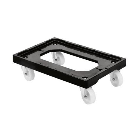 Socle rouleur pour bacs et caisses4 roues directrices montées sur roulement à billes Fabrication française. Compatible avec tous les bacs et caisses 400x300 et 600x400 mm.Ce socle est très stable et a une grande maniabilité.En complément, nous vous proposons le timon amovible. Matières :Base