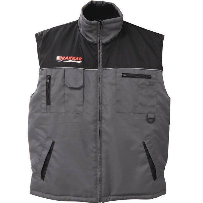 [ Les Actuels ]Gilet très chaud et super confortable !Coloris : gris/noir contrasté orange.Tissu extérieur : polyester ripstop enduit P.V.C. - Doublure : chaude en polaire polyester. - Rembourrage : polyester. - Fermeture : glissière centrale.Caractéristiques : - 2 poches en biais avec raba