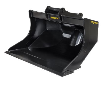 Godet de curage engcon – Développé en collaboration avec des professionnels du secteur pour être utilisé avec un tiltrotateur engcon. Angles biseautés pour éviter de heurter les murs d’une maison ou tout autre objet lors de la rotation du godet, flancs chanfreinés contribuant à une très bonne pénétration et angle de 16 degrés entre le point de fixation et le fond afin de simplifier la rotation du godet sans perte de matériau.