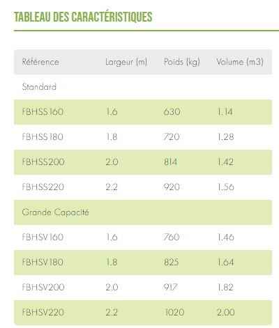 Le godet épandeur est disponible en modèle de 1m20 à 2m30 de large avec des volumes de 0.72 à 2.07 m3. Tout notre matériel agricole est issue d'une fabrication européenne maîtrisée et de qualité.