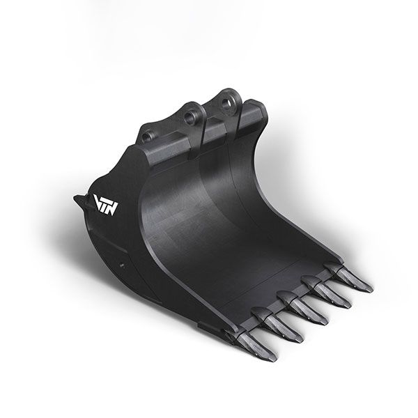 Le godet Roche HR VTN est conçu pour une utilisation sur des terrains compacts et rocheux. Sa conception est robuste avec double poutres, des renforts sur les flancs et des blindages anti usure. Son profil permet d’améliorer la force de pénétration et de cavage également en cas d’utilisatio