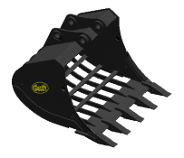 Godet SqueletteLe godet squelette est un produit spécial équipé d'une grille. Ce produit est élaboré pour : - Séparer des cailloux - Matériel démoli - Déchets du sol -