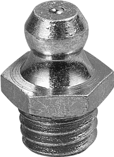 Graisseur à tête plate hexagonale (DIN 3404 - T1) à profil bas avec clapet anti - retour. Pour orifice de lubrification taraudé qui demande un dépassement minimal de la surface de la pièce à graisser. Utilisable avec une agrafe à tête plate. Pression maximale de travail 400 bar.