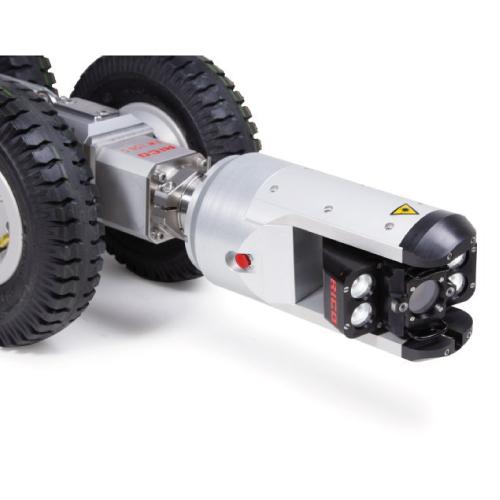 Chariot porteur pour caméra d'inspection de canalisation, de fabrication allemande, très robuste et très fiable. - Peut être utilisé, suivant les contraintes rencontrées, avec des roues ou des chenilles. Il se révèle très efficace quand la caméra poussée atteint ses limites et dans des s
