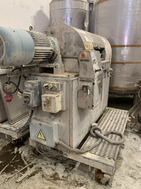 Granulateur en acier inoxydable fabriqué par Rieter. Dimensions : Longueur totale : 2800 mm Hauteur totale : 2000 mm Largeur totale : 1500 mm Longueur du tambour : 1600 mm Diamètre du tambour : 780 mm Décharge : 270x800 mm