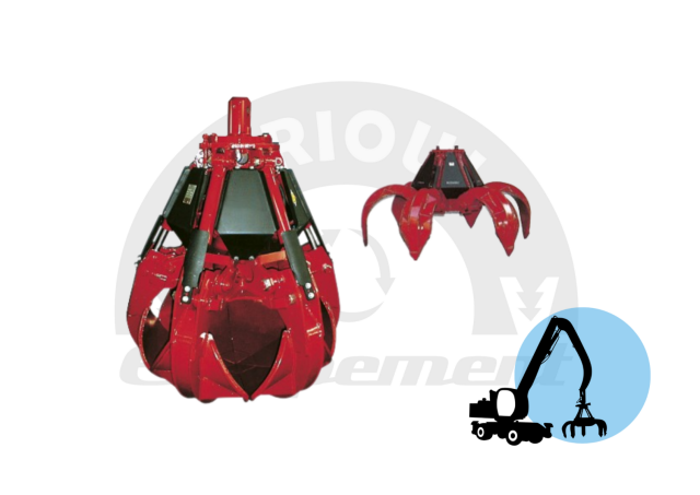 Le grappin permet le transfert des ferrailles, des déchets, des matériaux très encombrants ainsi que des matériaux de petits formats et légers.Â