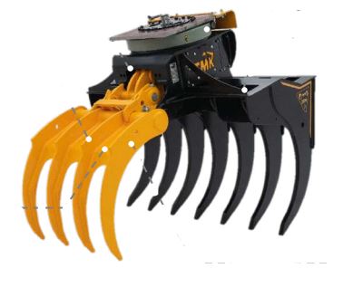 Pour pelle de 2 à 18T et Grue de 0.2 à 3.5 T. D'une ouverture de 640 à 1150 mm. - Une construction en WELDOX 700 prévue pour l'usage intensif. C'est la base de ce grappin qui constitue notre grappin multifonction. - COMPATIBILITÉ MACHINE - Mini - pelle - Chargeuse - Grue - Tracteur - Tra