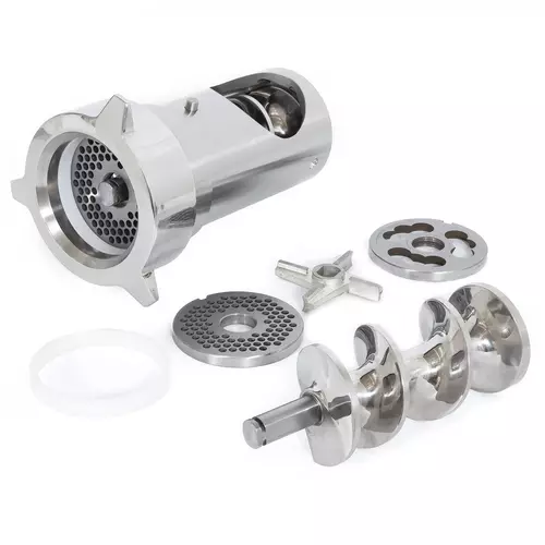 Le groupe - moteur et le groupe de coupe sont à commander séparément. - · Disponible avec système Enterprise ou système Unger (double coupe) en acier inox, avec 1 lame et 1 plaque de 6 mm. - Production jusqu'à 425 kg/h. - Caractéristiques - Largeur :310 - Profondeur : 460 - Hauteur :48