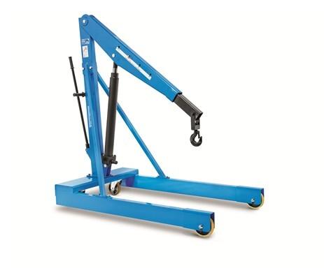 Grue d'atelier pliable Descriptif : Grue d'atelier pliable, manuelle et mobile pour une capacité de charge de 700 à 1000 kg. Cette grue très compacte est facilement repliable et déplaçable pour un rangement facilité. La grue équipée d'un crochet de charge est utilisée