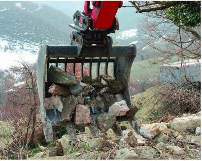 Le godet squelette est conçu pour sélectionner les cailloux et les matériaux inertes du terrain. En secouant le bras de la machine, le basculement fera tomber le matériel de dimensions inférieures à la distance des grilles.