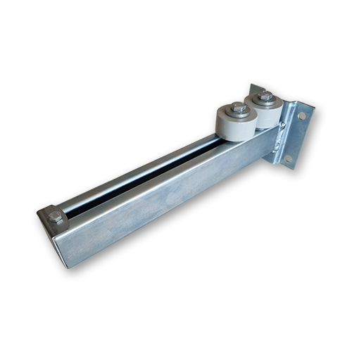 Le guide supérieur est composé de deux olives de 50mm de diamètre sur cages à rouleaux. L'axe réglable permet d'adapter le guide à l'ensemble de vos projets. Il se fixe facilement sur le mur avec des vis au niveau de la partie supérieure de la porte / du portail. Il permet de guider, stabiliser et maintenir verticalement le portail afin d'éviter tout oscillation ou décalage de la porte ou du portail lors des mouvements d'ouverture ou de fermeture. Ce guide est adapté pour les portes ou les portails coulissants sur rail au sol.