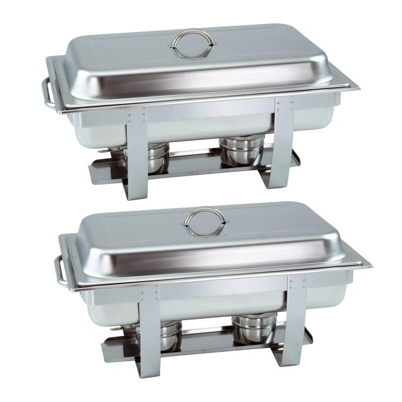 2 pièces Chafing Dish avec récipient GN 1/1 de 65 mm de profondeur Chauffe - plats empilable avec poignées carrées - Que ce soit pour un service traiteur ou une fête privée : - présentation élégante et réchauffage et maintien au chaud pratiques de vos plats. - 2 réchauds avec 1 bac GN