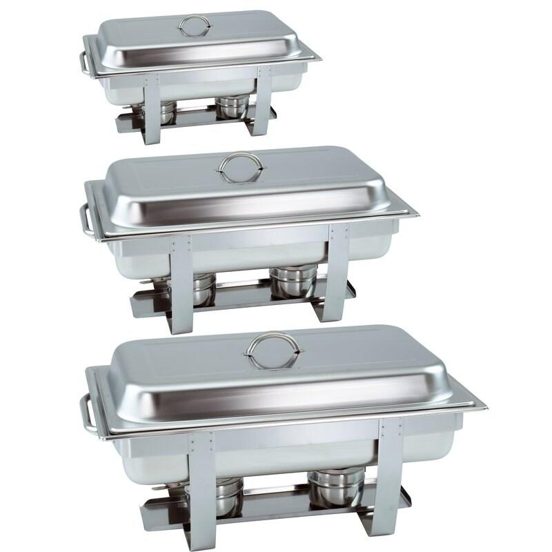 3 pièces Chafing Dish avec récipient GN 1/1 de 65 mm de profondeur Chauffe - plats empilable avec poignées carrées - Que ce soit pour un service traiteur ou une fête privée : - présentation élégante et réchauffage et maintien au chaud pratiques de vos plats. - 3 réchauds avec 1 bac GN