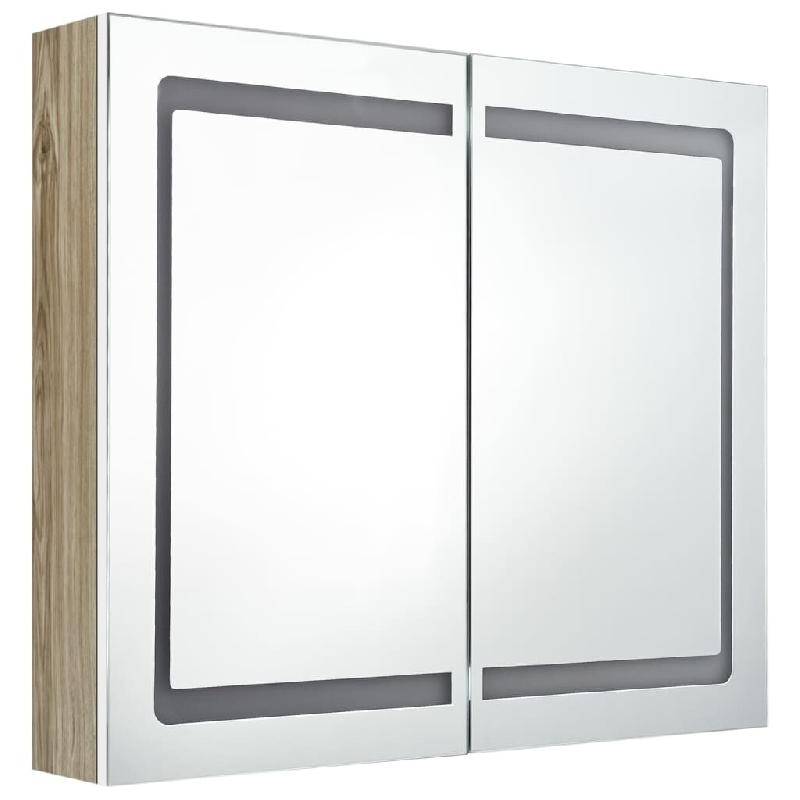 Helloshop26 - Armoire de salle de bain 80 x 12 x 68 cm à miroir à led blanc et chêne 02_0006618 - 3000363547768