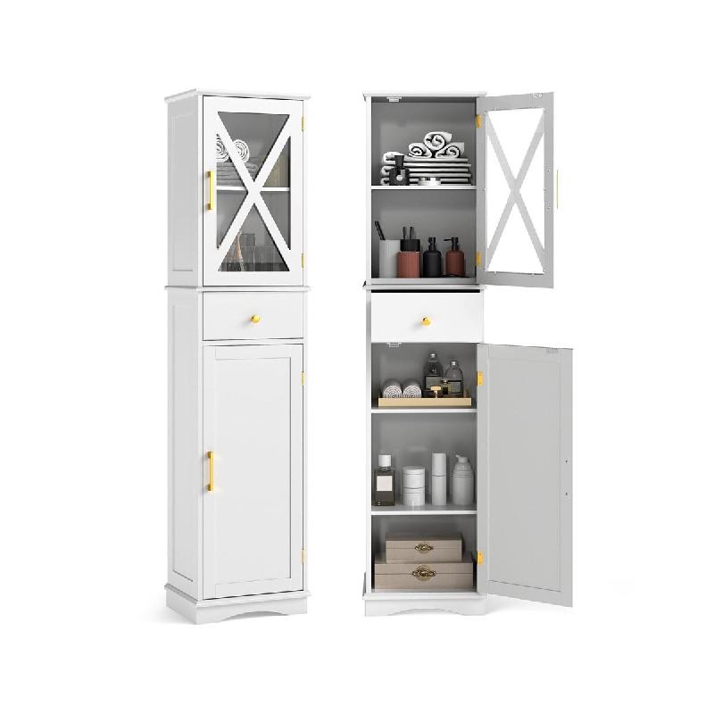 L'armoire de salle de bain indépendante combine style et praticité pour votre espace. - Avec ses diverses options de rangement, elle garde vos essentiels bien organisés. - Parfaite pour la salle de bain, le salon ou la buanderie, cette armoire de rangement apporte une touche moderne à votre dÃ