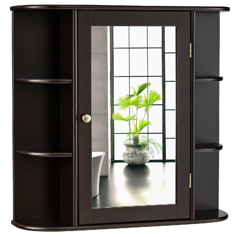 Helloshop26 - Armoire murale salle de bain rangement compact 65 x 17 x 64 cm miroir pratique design moderne en MDF marron 20_0012771 - 3000227396426