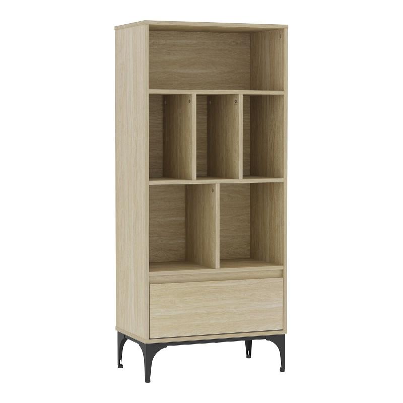 Ses 6 niches ouvertes offrent un espace généreux pour ranger vos livres, exposer des plantes, cadres photo ou objets déco, tout en les gardant facilement accessibles et joliment présentés. Une grande tiroir en partie basse complète l'ensemble et permet de dissimuler d'autres affaires, pour un rangement encore plus organisé.