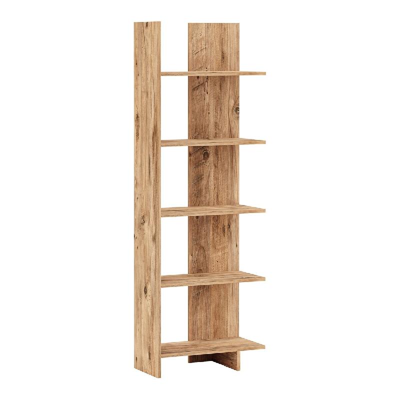 BibliothèqueCette bibliothèque au design intemporel permet de ranger vos objets tout en s'intégrant harmonieusement à tout type d'intérieur.Ses 5 étagères ouvertes offrent un espace généreux pour exposer livres, plantes et objets personnels tout en les gardant toujours à portée de main.Polyvalente et fonctionnelle, elle trouve sa place aussi bien dans un salon que dans un bureau ou toute autre chambre de la maison.Sa surface facile d'entretien permet d'éliminer aisément la poussière et les salissures à l'aide d'un chiffon humide.Grâce à des instructions de montage claires et simples à comprendre, l'étagère se monte rapidement. Vous gagnez ainsi de l'espace de rangement supplémentaire sans perdre de temps et mettez de l'ordre dans votre intérieur.Points forts du produit :- bibliothèque élégante et épurée