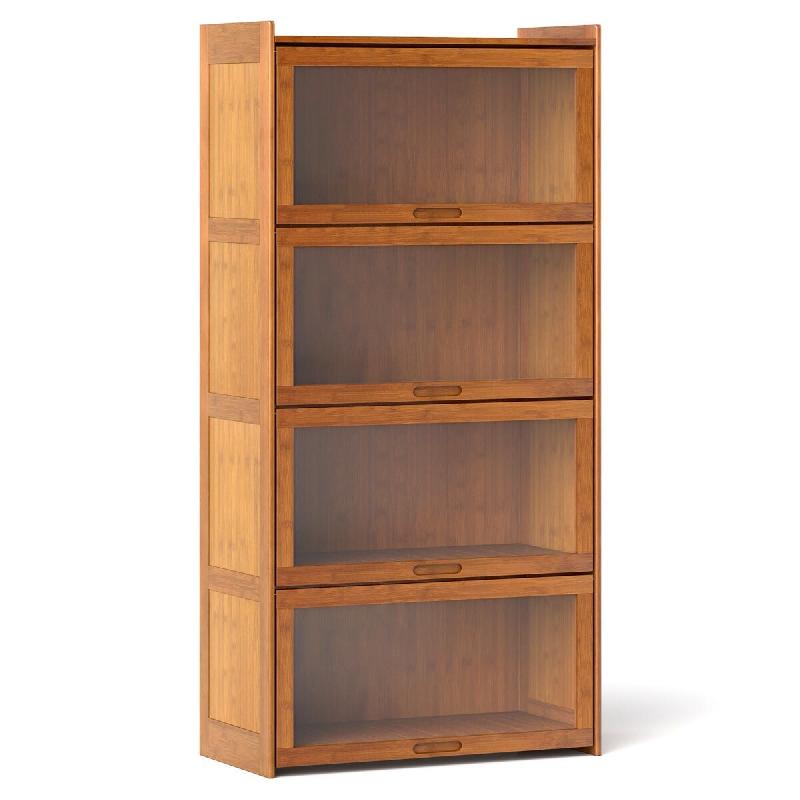 Helloshop26 - Bibliothèque 4 niveaux 69 x 34 x 140 cm espace de rangement ample portes rabattables design rustique en bambou marron 20_0018754 - 3000