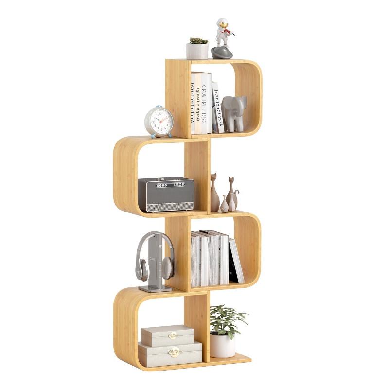 Helloshop26 - Bibliothèque en forme de s à 4 niveaux 23 x 61 x 133,5 cm rangement ouvert design moderne en bambou naturel 20_0010664 - 3000226292774