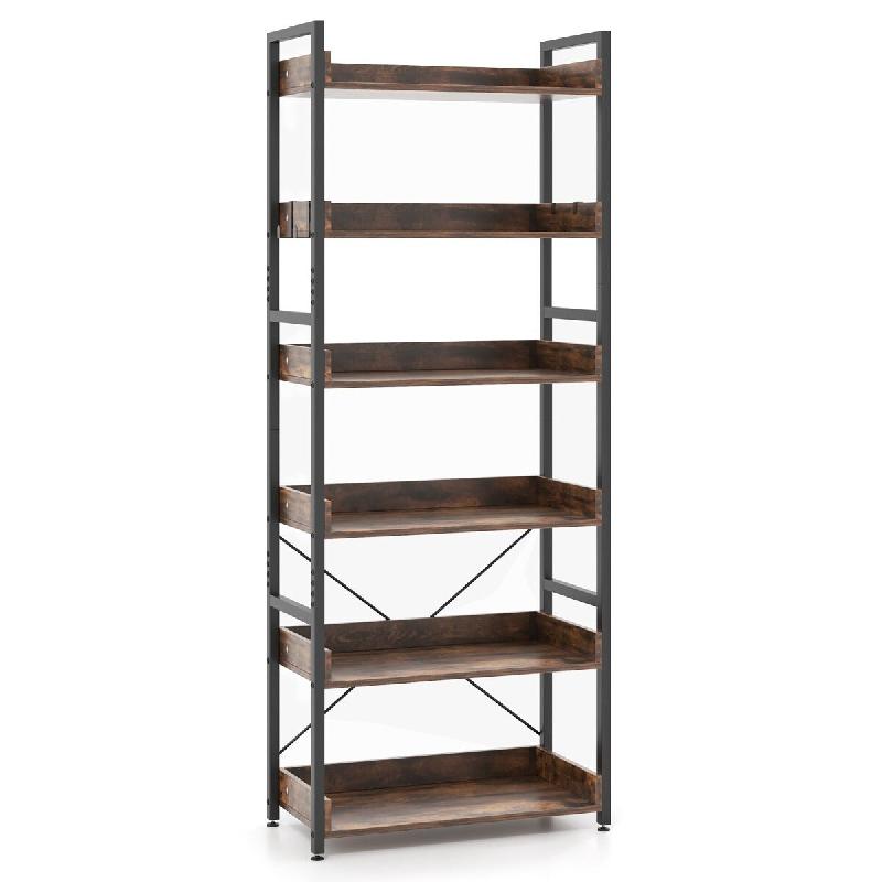 5 niveaux : Avec 5 niveaux ouverts, exposez vos livres, décorations et plantes préférés sur cette étagère de rangement rustique dans le salon, la chambre, la salle de bain ou l’entrée. - Matériaux de longue durée : Fabriquée en panneaux d’aggloméré et en acier, ce meuble de rangemen