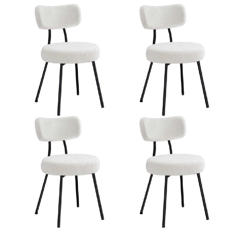 Avec leur silhouette arrondie et fluide, ces chaises de salle à manger s'intègrent harmonieusement à différents styles de décoration. Elles apportent une note d'élégance moderne, que ce soit dans la salle à manger, la cuisine, le salon ou encore devant une coiffeuse.Leur assise épaisse de 10 cm et leur large dossier rembourré, tous deux recouverts d'un tissu peluche doux, offrent un confort idéal pour rester assis longtemps. Parfaites pour les repas prolongés comme pour des soirées conviviales, elles vous garantissent une assise agréable et accueillante.Leur cadre en acier renforcé assure une solidité remarquable, capable de supporter jusqu'à 120 kg par chaise. La conception robuste promet une utilisation fiable et durable, sans compromettre leur raffinement.Les pieds réglables articulés permettent de stabiliser facilement les chaises sur des sols irréguliers tout en évitant les rayures. Vous profitez ainsi d'un confort optimal sans craindre d'abîmer vos surfaces.Leur structure simple permet un montage rapide : en une dizaine de minutes seulement, vos chaises sont prêtes à l'emploi pour embellir votre intérieur.Couleur : Blanc crème