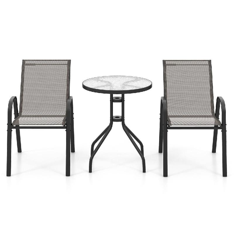 Helloshop26 - Ensemble de bistrot de jardin 3 pièces table ronde 60 x 60 x 70 cm confort ergonomique empilable design en métal gris 20_0011844 - gri