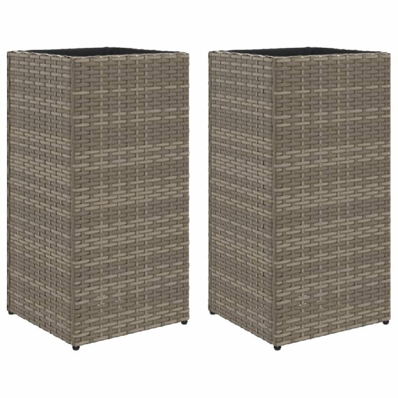 Helloshop26 - Jardinière bac lit surélevé plantes fleurs jardin terrasses lot de 2 30 x 30 x 60 cm résine tressée gris 02_0038927 - 3000218011826