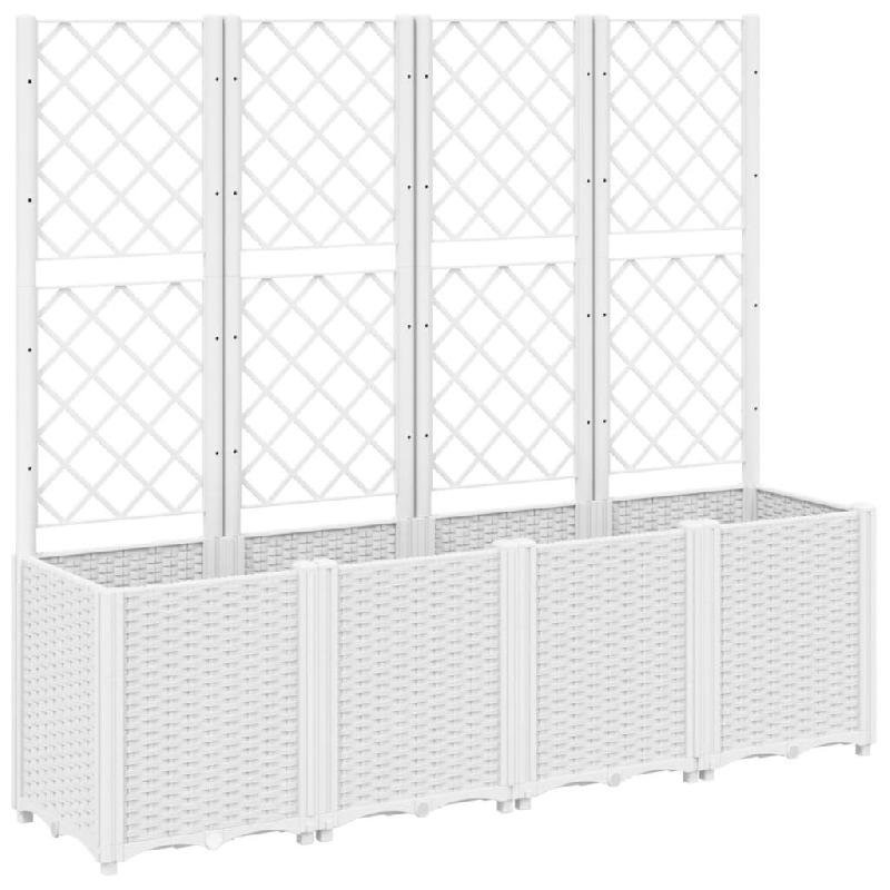 Helloshop26 - Jardinière bac lit surélevé plantes fleurs terrasse jardin avec treillis 160 x 40 x 140 cm PP blanc 02_0038262 - 3000214150765