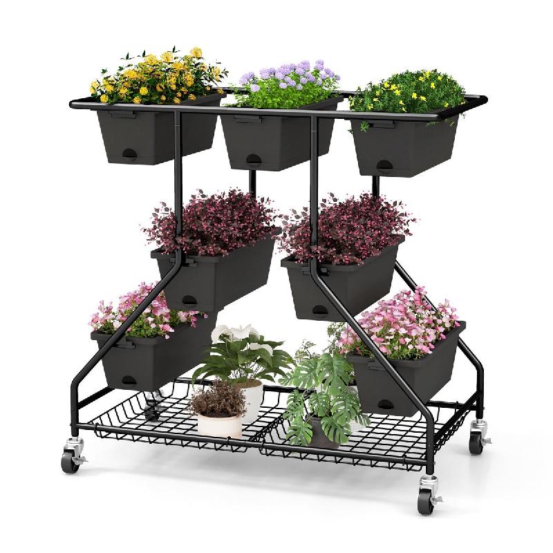 Helloshop26 - Jardinière surélevée vertical 100 x 56 x 99 cm avec 7 bacs de plantation et 4 roulettes verrouillables en PP noir 20_0012223 - 300022