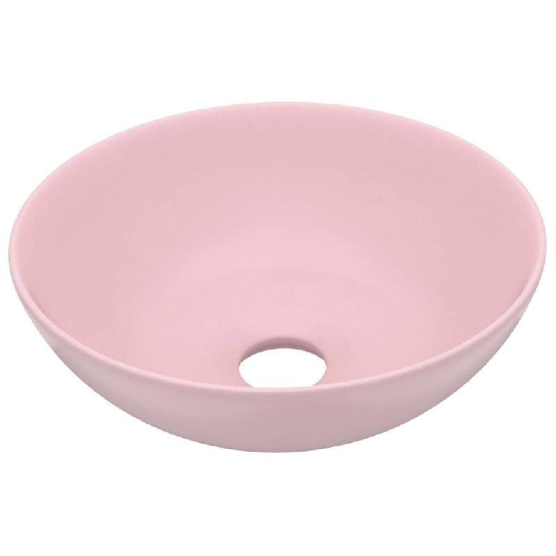Couleur : rose matMatériau : céramiqueDimensions: 280 x 100 mm (Diamètre x H)Taille du trou de vidange : 45 mmType d'installation : au-dessus du comptoirLe tuyau de vidange n'est pas inclus
