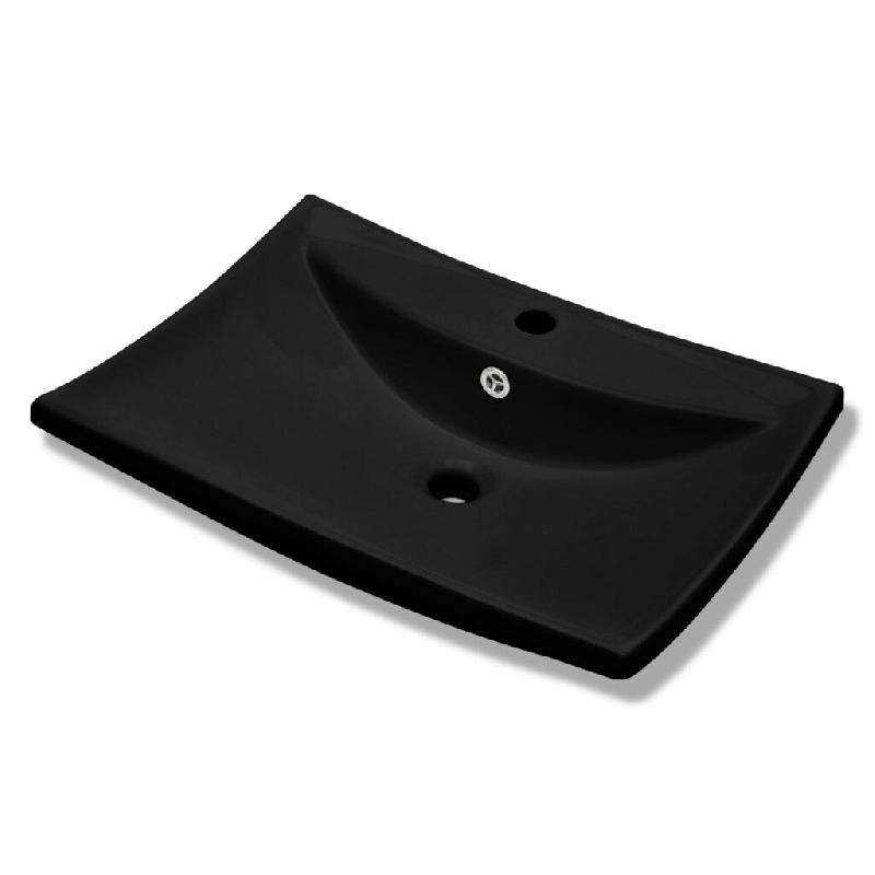 Helloshop26 - Lavabo vasque rectangulaire en céramique noir de luxe avec trop-plein et trou 60 x 44 cm céramique noir 02_0002489 - 3000099861534