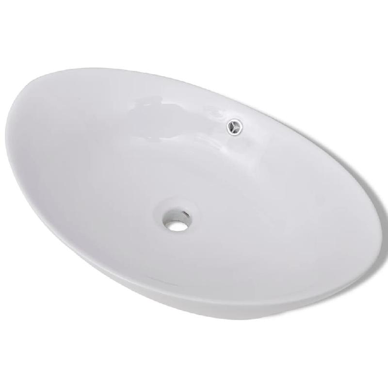 Helloshop26 - Lavabo vasque salle de bain ovale avec trop plein 59 cm céramique blanc 02_0002483 - 3000099801530
